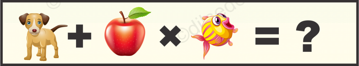 चौथी पंक्ति में मछली, कुत्ता और सेब भी है. कुत्ता + सेब * मछली = 29 .