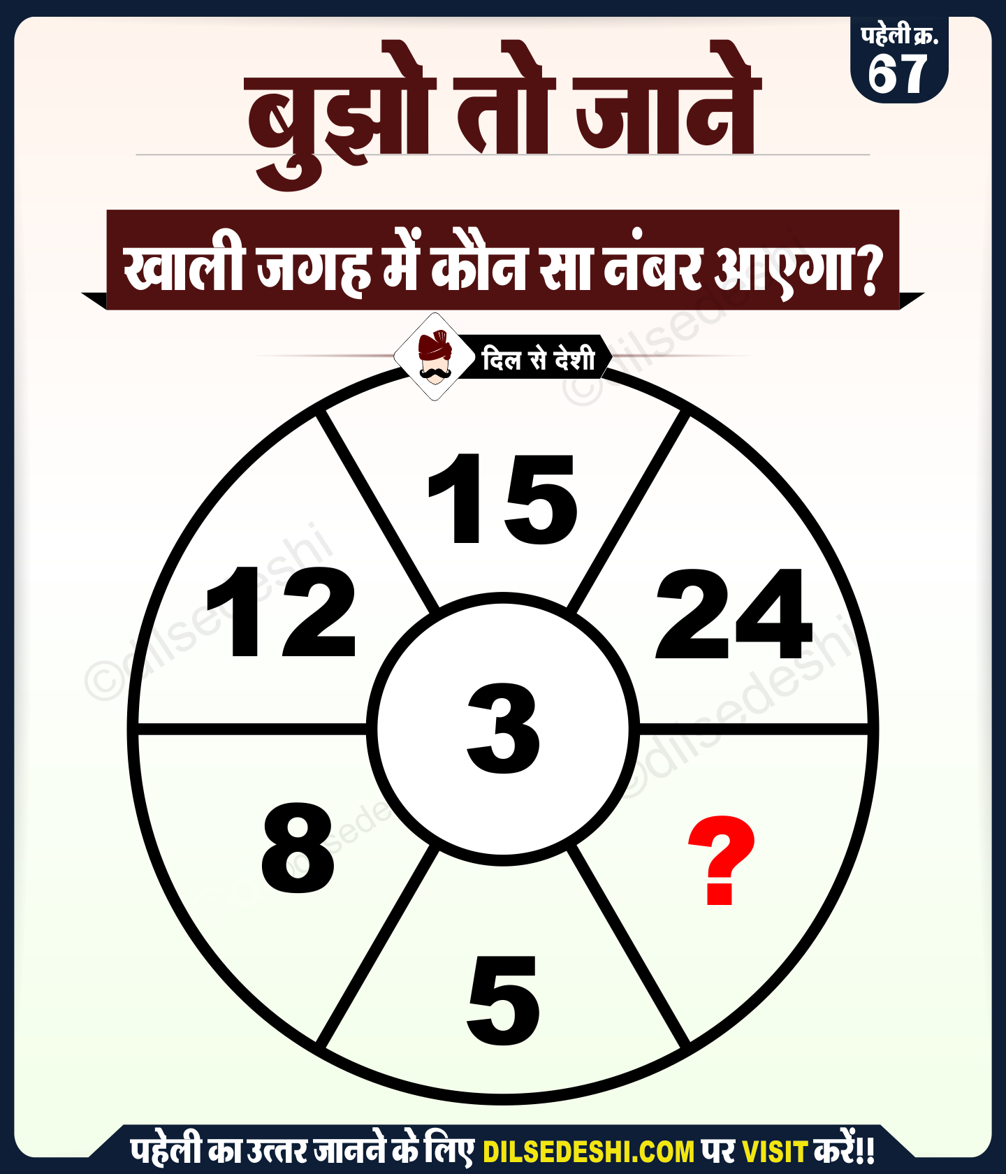 दोस्तों ये सभी संख्याएँ किसी एक लॉजिक पर लिखी हुई है जो एक दुसरे से जुड़ी है, आपको बस उसी लॉजिक को ढूँढना है और सही संख्या खली स्थान पर भरना है .