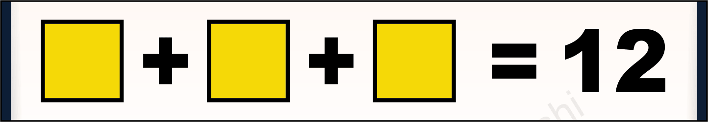 जैसा की आप देख सकते है पहली पंक्ति में चतुर्भुज है जिनकी संख्या 3 और सम 12. अतः 4 + 4 + 4= 12