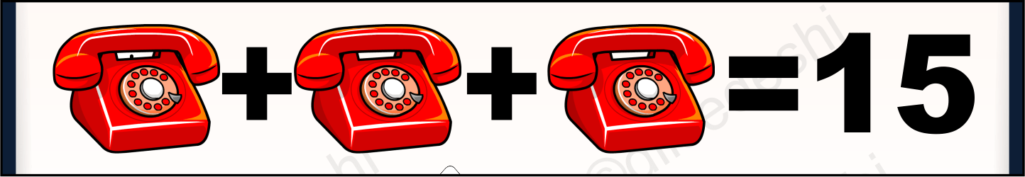 जैसा की आप देख सकते है पहली पंक्ति में टेलीफोन है जिनकी संख्या 3 और सम 15. अतः 5 + 5 + 5= 15.