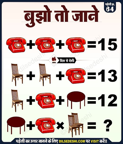टेलीफोन, कुर्सी व टेबल पहेली क्र. 64 व 65 का उत्तर | Telephone, Chair and Table Logical Puzzle Quiz Questions Answer